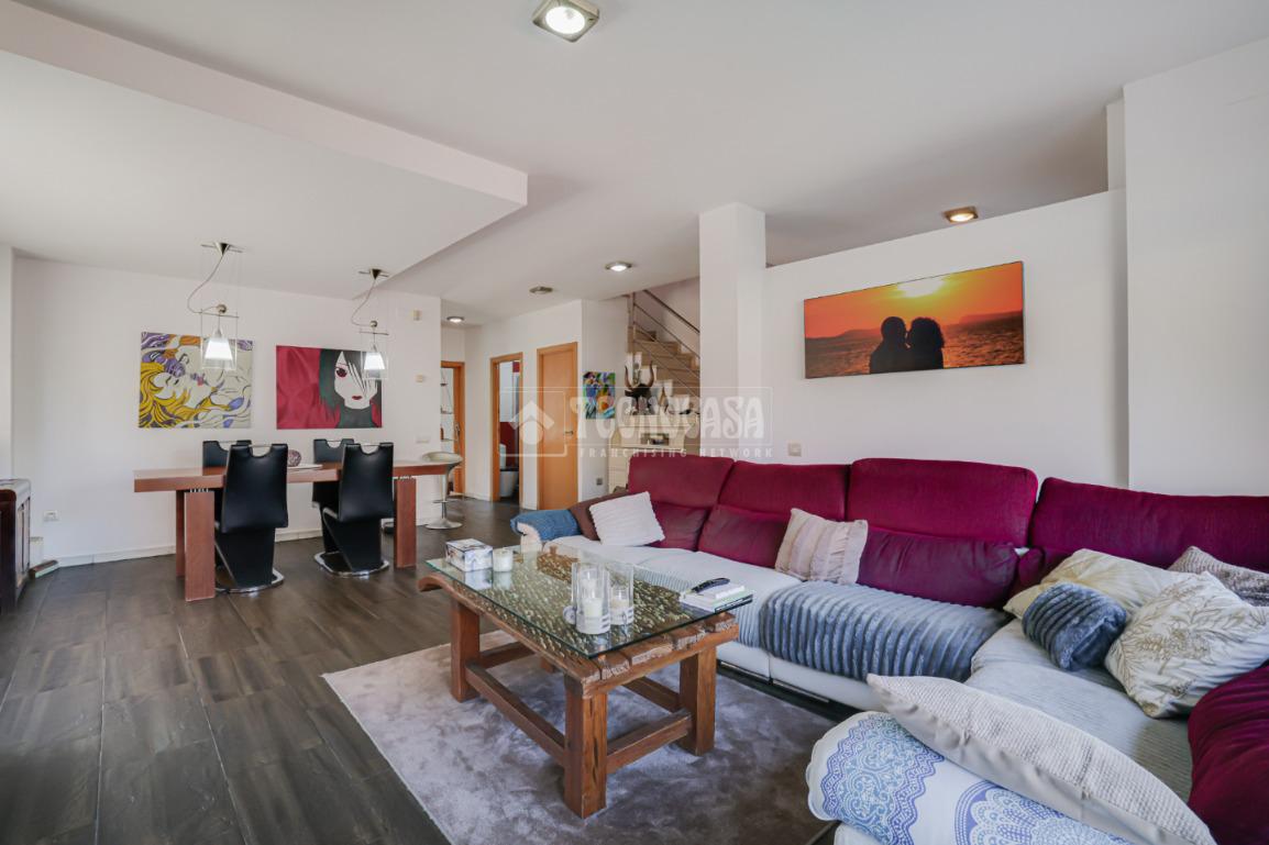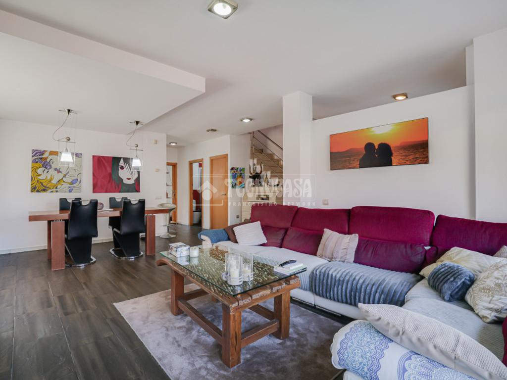 Esta impecable casa pareada, construida en 2001, ofrece un estilo de vida cómodo y moderno en plena naturaleza. Con 251 m² construidos y distribuidos en tres plantas, cada rincón de esta propiedad ha sido diseñado para maximizar el espacio y la funcionalidad. En la primera planta, un amplio comedor te da la bienvenida, con salida a una terraza perfecta para disfrutar de las vistas a la montaña. La cocina independiente, y el dormitorio doble con balcón añade un toque especial.